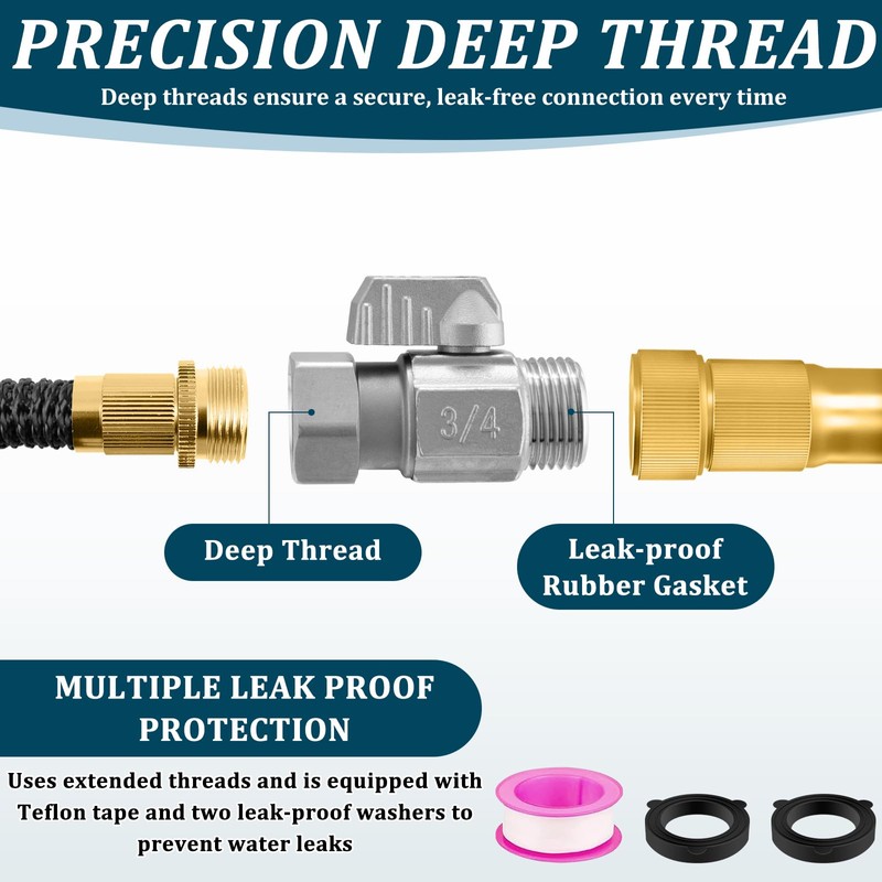 • Precision Connection Design:This high-quality garden hose shut off valve features a 3/4” GHT standard thread, making it compatible with most garden hoses. The garden hose valve is designed with a unique anti-corrosion feature to prevent copper-aluminum reactions, ensuring smooth operation without sticking. This makes it the ideal choice for controlling water flow and shutting off your garden hose with ease.
