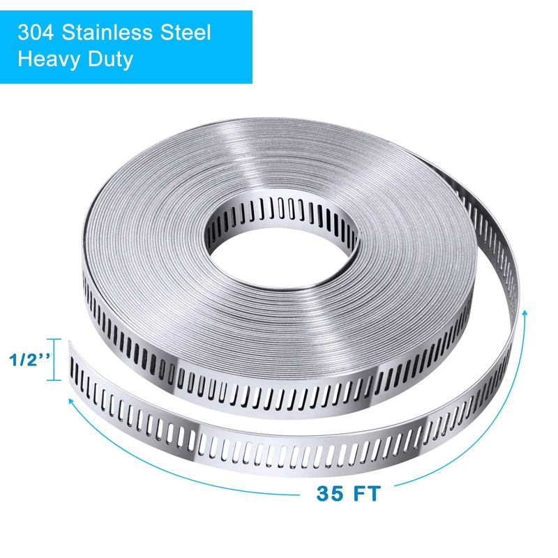 - All 304 Stainless Steel: 12 FT strap and 8 PCS fasteners are all made of high quality 304 stainless steel, NOT 201 SS. These worm clamps will last forever, reusable, anti-rust and anti-corrosive, very suitable for outdoor use!