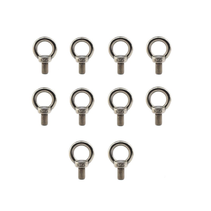 304 Stainless Steel M8 Lifting Rigging Eyebolt Ring Shaped with Standard Length of Thread Pack of 10 pcs