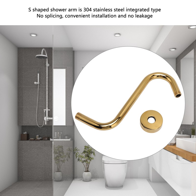 304 Stainless Steel S Shaped Shower Arm Gold Shower Head Extension Arm Bathroom Hardware Accessories