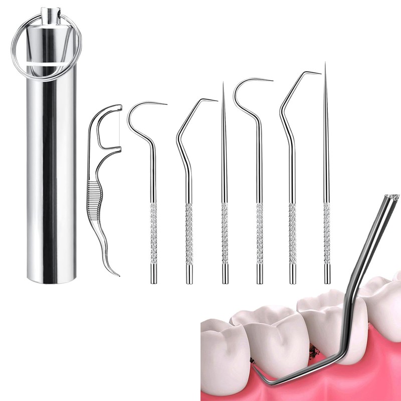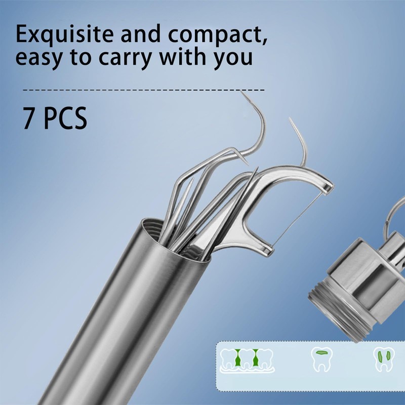 304 Stainless Steel Toothpick Set, 7 Pieces Toothpicks, Reusable, with 1 Portable Toothpick Holder, Toothpick for Travel, Portable Toothpicks, for Outdoor Picnic and Camping