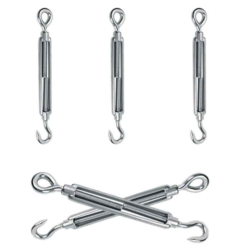 304 Stainless Steel Turnbuckle, Rust Resistant, High Strength Turnbuckle, Stainless Steel Hook & Eye Rigging, Tensioner, Hardware, Weatherproof Hook, Rope Fixing, Tent Setup, Structure Reinforcement (M8 5)