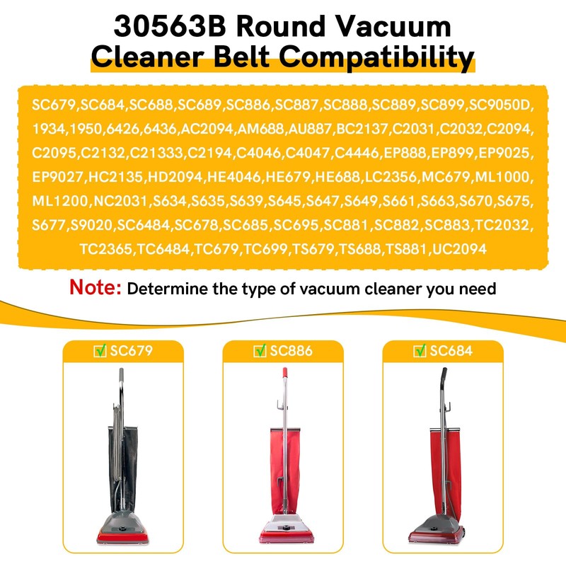 - 【30563b Belt Material】- 30563B round vacuum cleaner belt made of high quality rubber, 30563B vacuum replacement round belt has great flexibility, so that your vacuum machine gets the job done in the best condition.