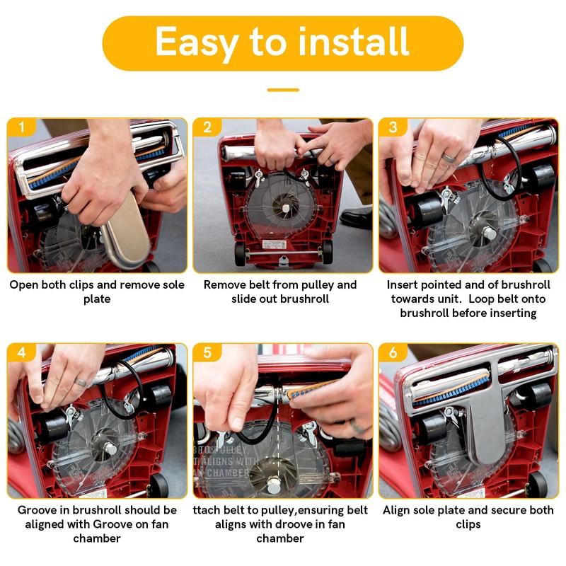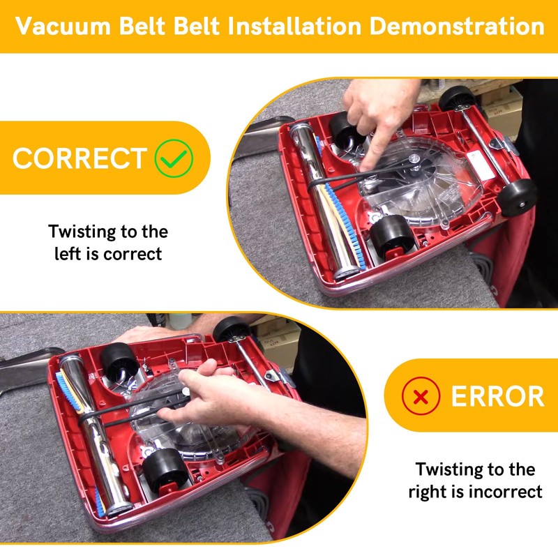 - 【Easy to Install】- Proper use vacuum belts 30563b for Sanitaire SC679. Twisting to the right is incorrect you can see number one it is hitting on the guard and it is a lot lined up with the groove so let us pull it off use our fingers twist it to the left thumbs pull bottom of the belt is lined up with a groove and this grand fan scroll hosing that is correct now.
