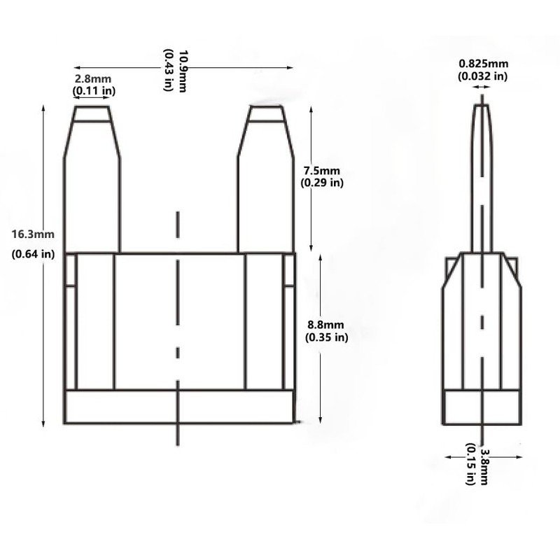 - Mini fuse blades come in 6 different colors for easy differentiation and identification of fuse types.