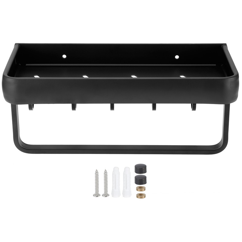 30cm Bathroom Shelf Space Aluminum Wall Mounted Hollow Storage Rack Basket Organizer(SingleLayer with Rod and 5 Hooks )