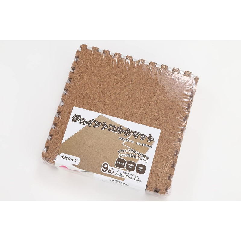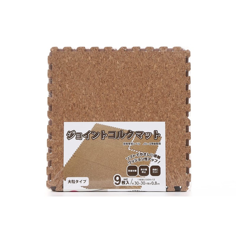 - ・【サイズ】1枚あたりの外寸(約):幅30cm×奥行30cm×厚み0.8cm(1枚) 【セット内容】ジョイントマット9枚set 、総重量:約 550g 【素材】表面/コルク、裏面/ポリエチレン
