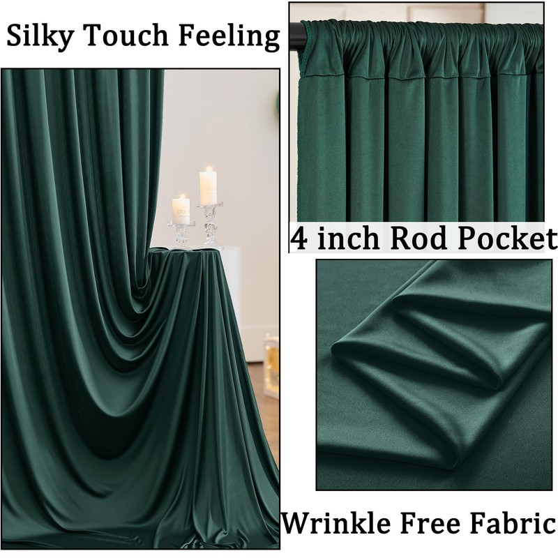 - 5. Dark Green drapes for wedding can be machine wash and hand wash.Drapes for backdrop can customize with various colors and element to make your party very charming and colourful.