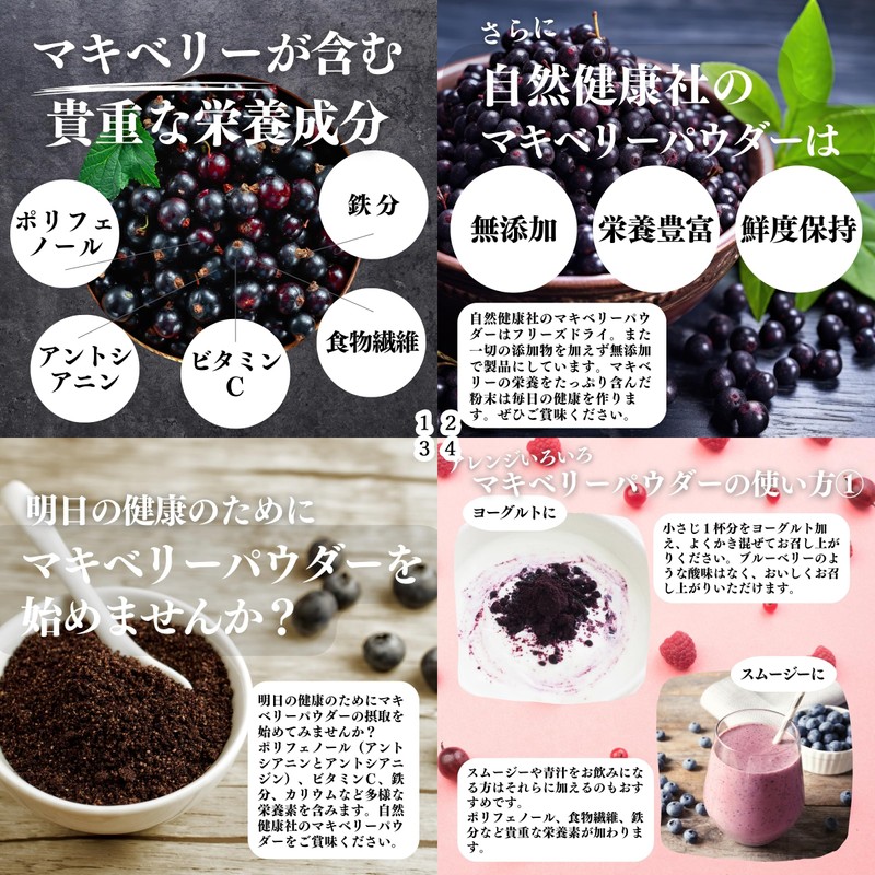 自然健康社 マキベリー パウダー 30g×3個 粉末 サプリ フリーズドライ 無添加
