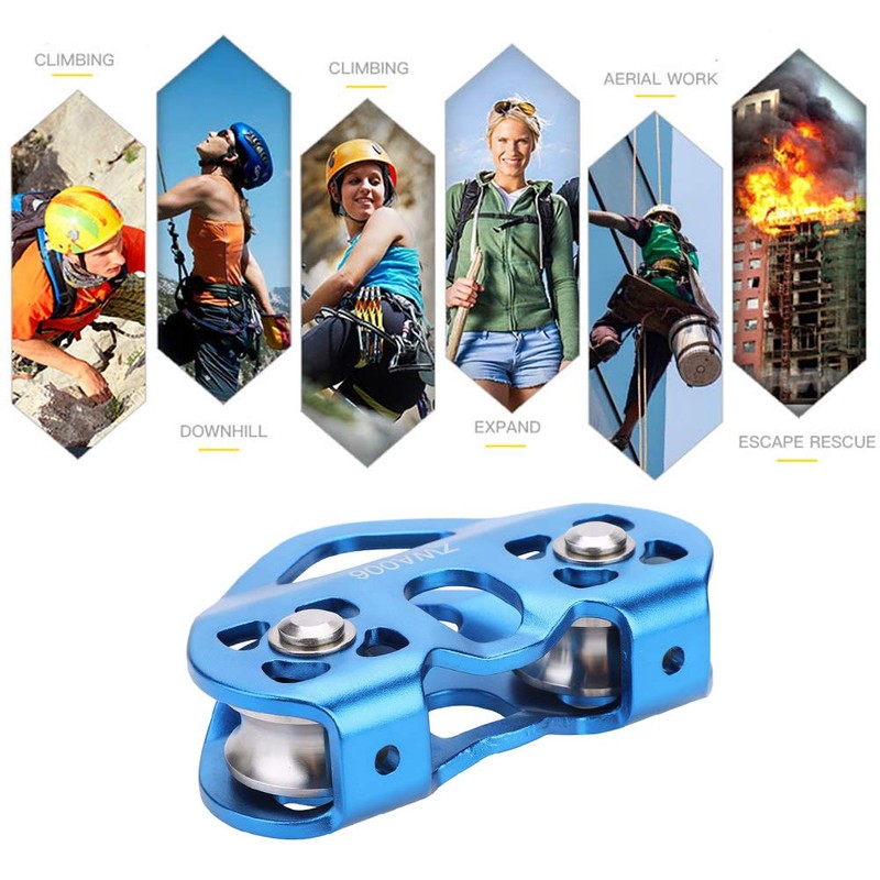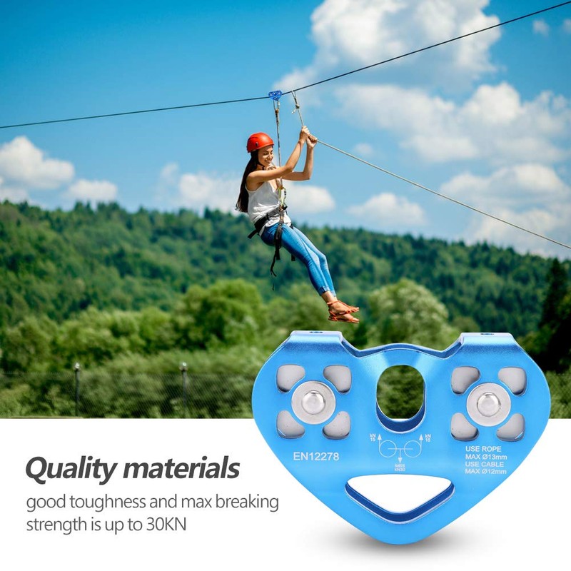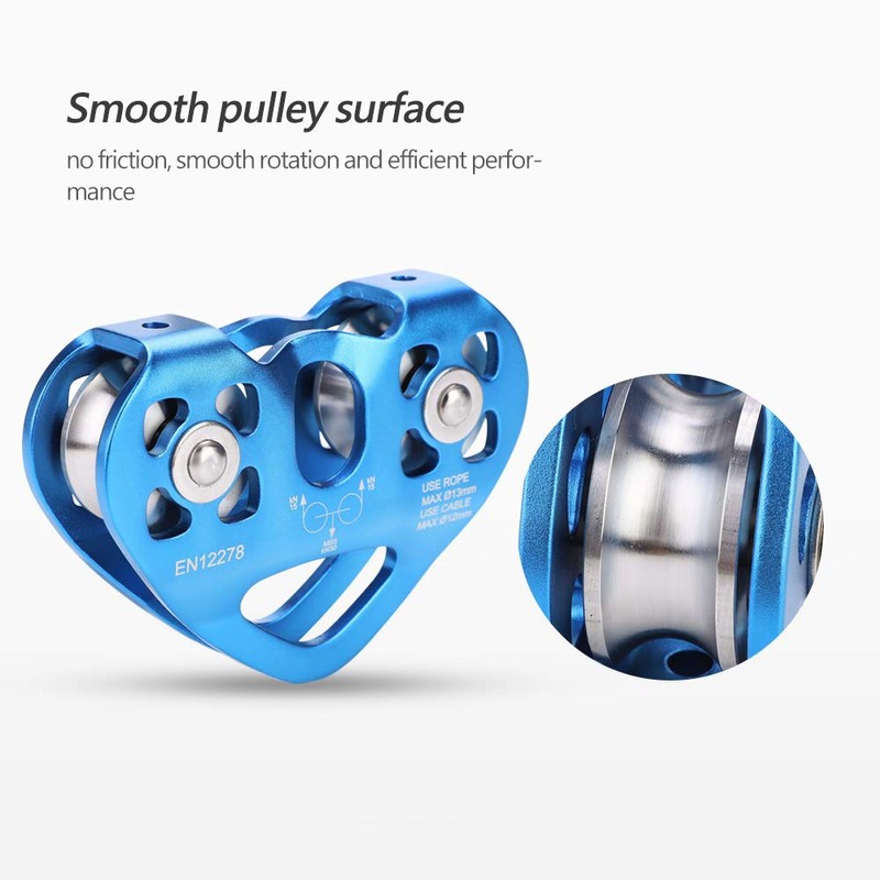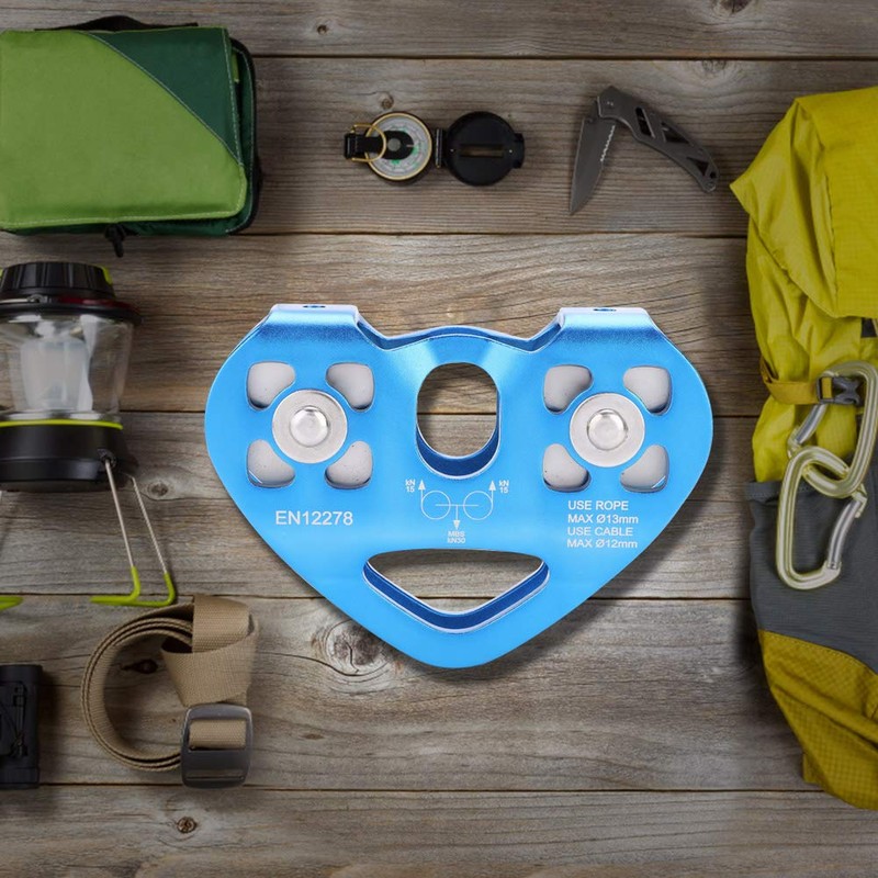 30KN Pulley, Double Bearing Aluminium Climbing Pulley, Aerial Work Equipment for 13mm Rope with Smooth Surface, for Outdoor Exploration and Mountaineering (Blue)