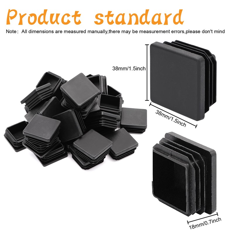 - End cap for 1-1/2"(38mm) outside diameter (OD) square tubing.Suitable for square pipes with a wall thickness of 0.5mm-2mm.