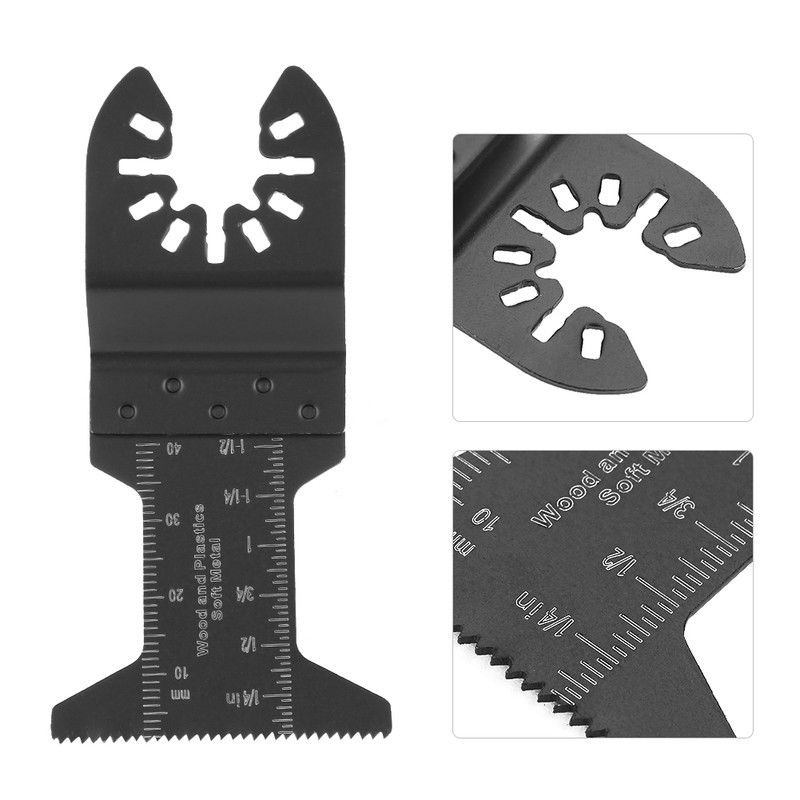 1、Made of high carbon steel, wear resistant and durable for long term use. 2、Sharp and tidy saw teeth cut quickly and not easy to break. 3、Digital scales on the surface help achieve accurate cutting depth. 4、Ideal tool for cutting wood, plastic, soft metal, etc. 5、Universal saw blade for most brands of electric oscillating tools.