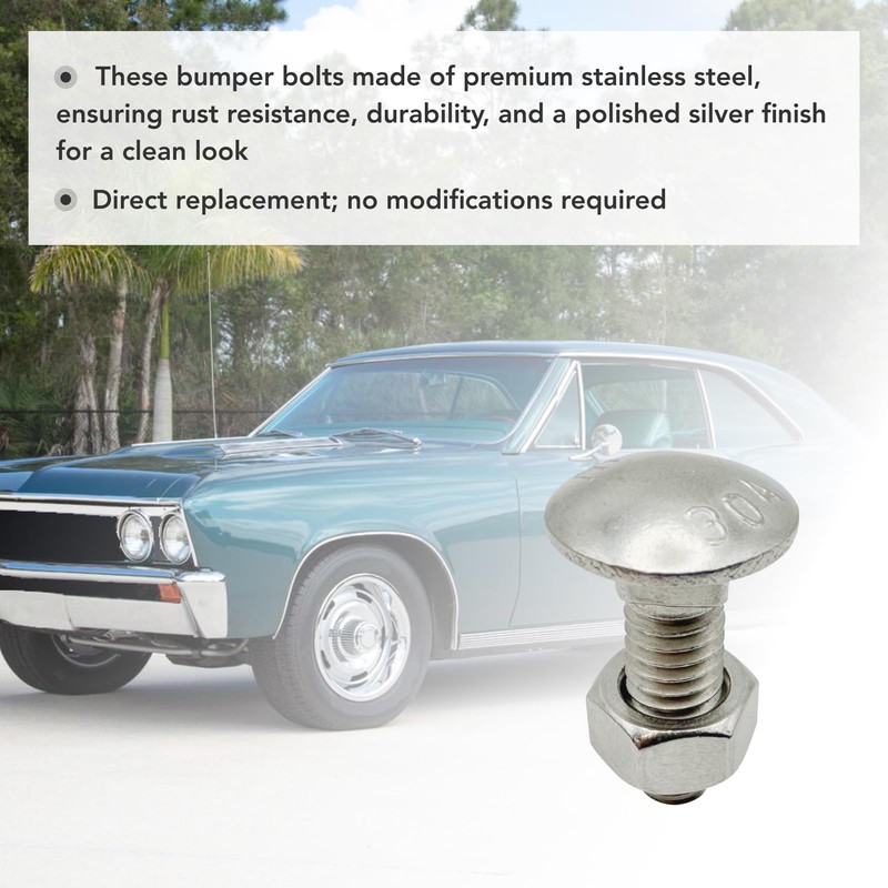 - Perfect Fit: Our bumper bolts and nuts Custom-designed for specific fit for Chevrolet Chevelle Malibu 1964-1967, fit for Chevy II 1962-1968, fit for El Camino 1964-1972, fit for Monte Carlo Nova 1970-1972, fit for Oldsmobile Cutlass 1970, fit for Pontiac GTO LeMans Tempest 1966 1967