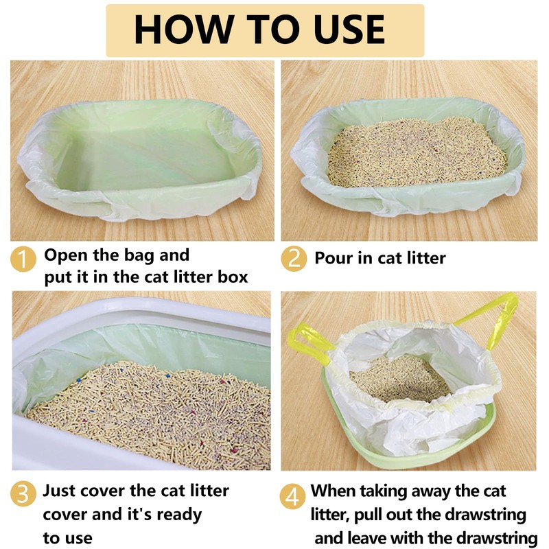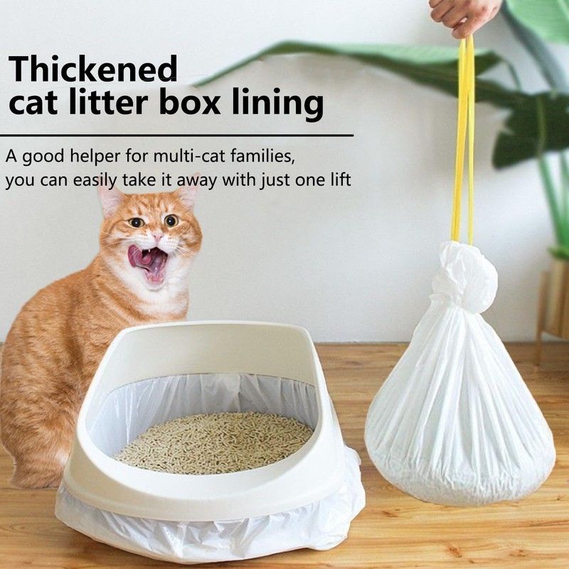 - 【CONVENIENT TO USE】 This cat litter bag comes with drawstring are easy to use. Just place the liner on the tray and pour the cat litter on the liners. Once used,just pull the drawstrings, tie it up and toss it away. Saving effort for many cat lover and pet lover, and you will have more confidence to raise cats.