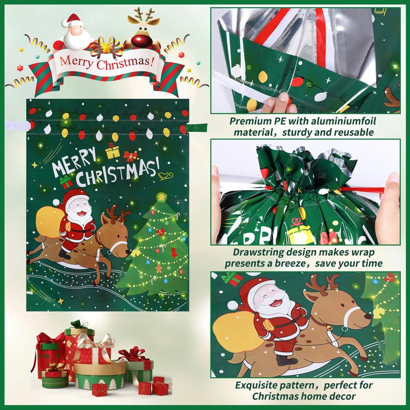 - 【Christmas Surprise】: The christmas gift bags multipack are the best choice for Christmas gift packaging, Christmas tree decoration, to create a merry Christmas atmosphere. They're great for loading books, clothes, cookies, and anything else you might want. Use the drawstring gift bag to surprise your friends because they have no idea what gift is inside.