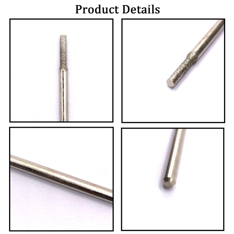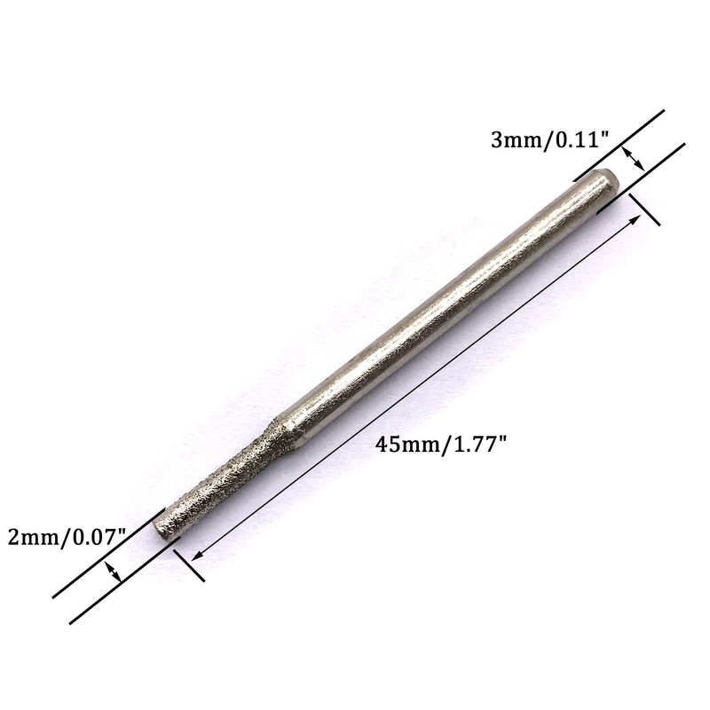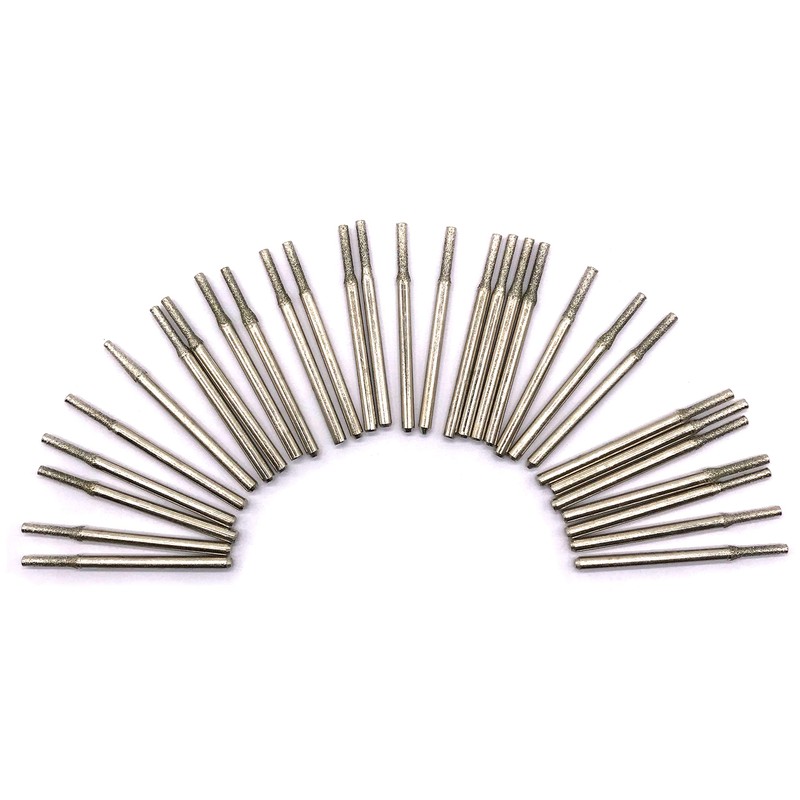 30Pcs Diamond Grinding Bits, 2mm Cylinder Head, 3mm Shank, 45mm Long Diamond Coated Burr Mounted Point