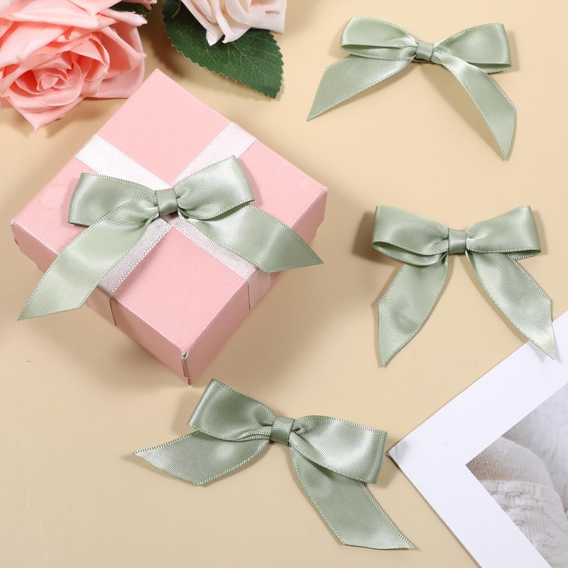30PCS Green Satin Ribbon Bows 2 inch Self Adhesive Satin Bows for Gift Wrapping Pretied Bows with Sticky Gel Pads Bow Decorations for Birthday Party Wedding Decorations Crafts Gift Bakery Candy Bags