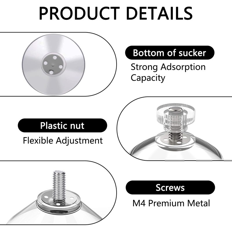 - High Quality Material: This suction cup is made of high quality PVC, which can be used for a long time and not easily damaged. Its flexibility can adapt to irregular surfaces and enhance the suction force. High strength metal screws ensure stability and durability.