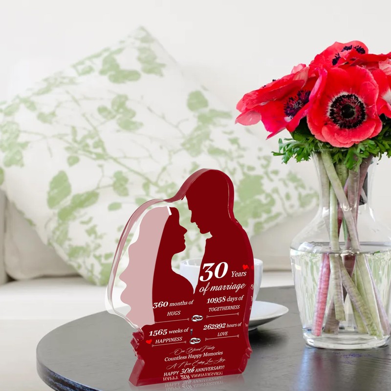 30th Wedding Anniversary Decorations 0.6" Thickness Acrylic, 30 Year Anniversary Wedding Gifts for Couple, 30 Year Of Marriage Keepsake Wife Gifts from Husband Valentines Day Anniversary Presents