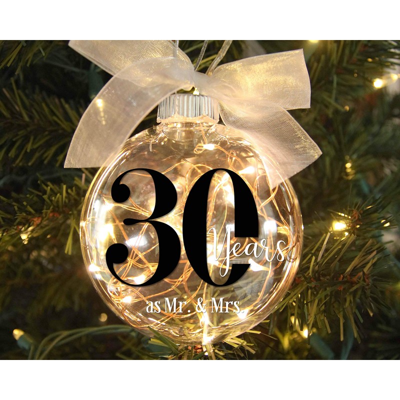 30th Wedding Anniversary Lighted Christmas Ornament with Timer, 30 Years as Mr & Mrs, Gift for Married Couple, Transparent Disc-Shaped with LED Fairy Lights, Battery Operated (30th Anniversary)