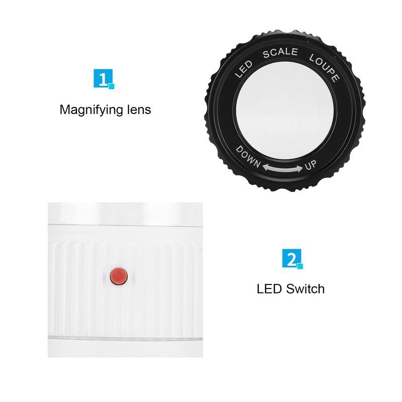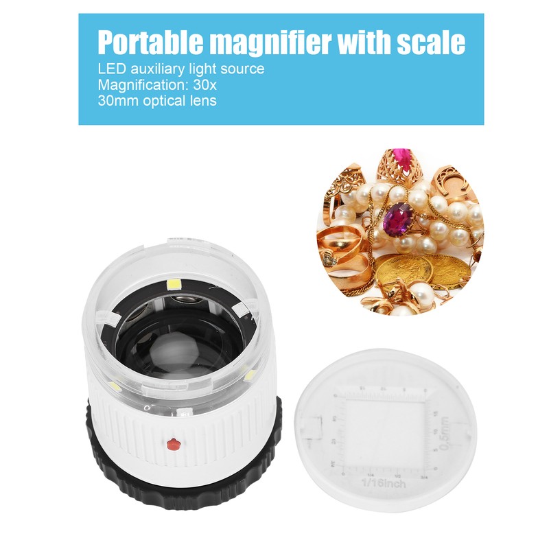 30X Optics Loupes Magnifier with Scale Portable Adjustable Magnifying Glass White