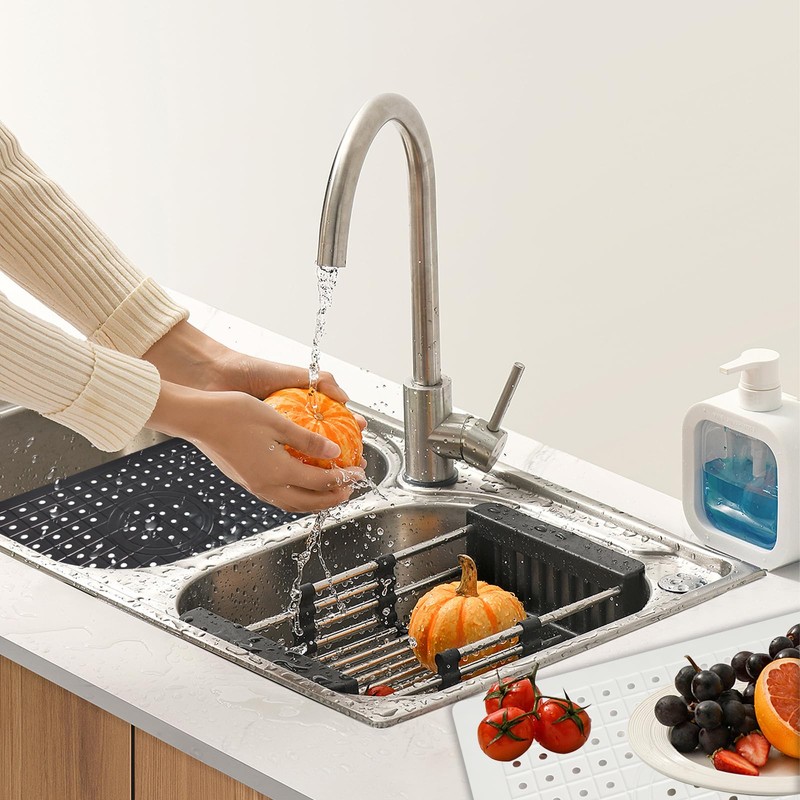 - ✔QUICK DRAINAGE The sink mat is equipped with multiple drain holes, the water can drain quickly and easily, and the sink does not stagnate. At the same time, it can block food leftovers and rubbish to prevent clogging of the sewer.