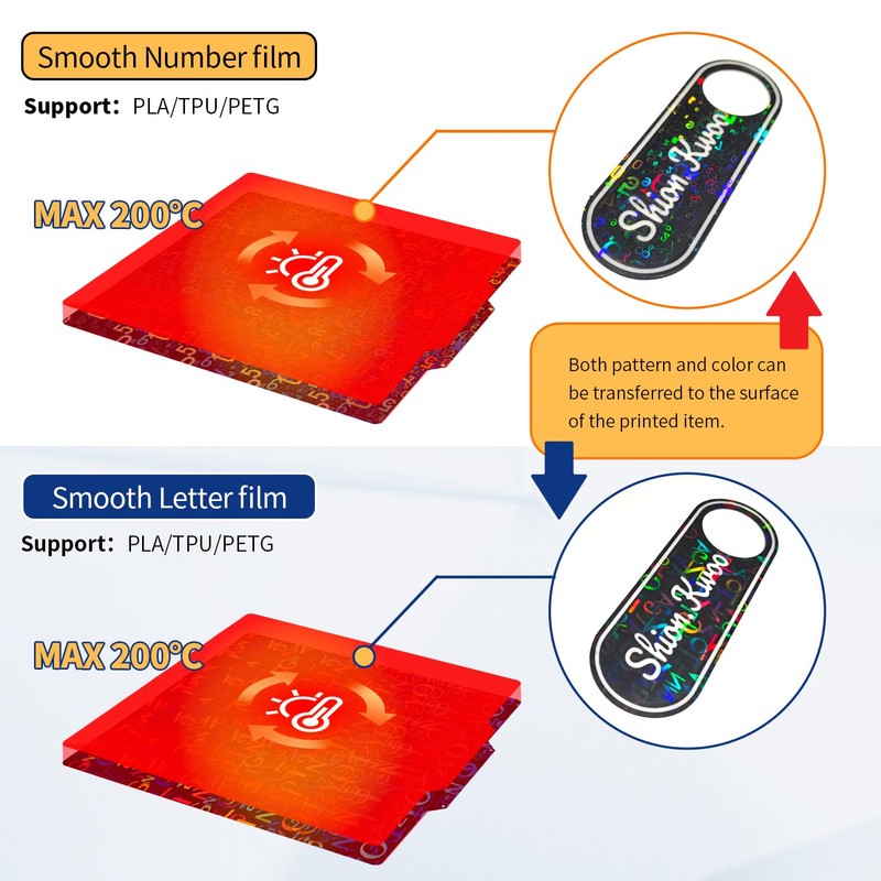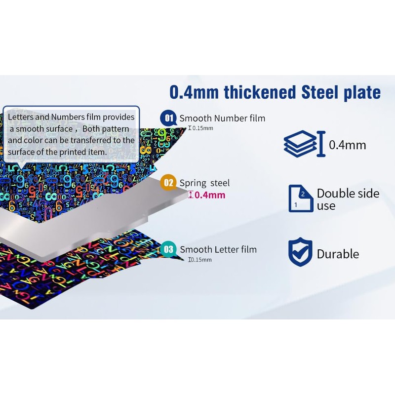 • 【Product Features】:For the smooth build plate(PEZM/PESZ Version), it presents very three-dimensional numbers and letters, which is very personalized. The staggered layout is not tacky, and the dark and dazzling color tone has a sense of mystery. Its design is different from other traditions, and it does not limit the size and shape of the printed model. It can display a complete effect, which is very suitable for beginners,Letters and numbers of different sizes are very unique and not tacky at all.