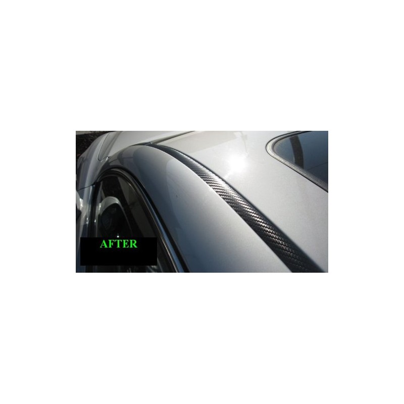 - NOTE: THIS IS NOT REAL CARBON FIBER. These are carbon fiber, vinyl-wrapped, flexible plastic trim pieces that you place onto your roof or roof's existing moldings. The pieces have a 3M-adhesive strip on the back.