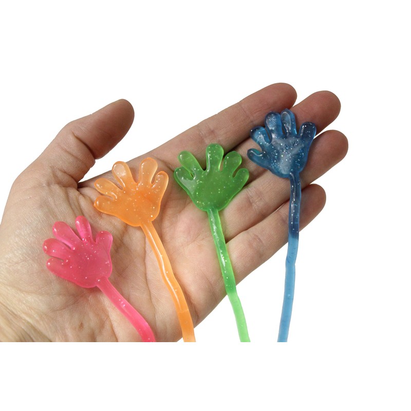 - INCLUDES: 48 Plastic tops - Tops are 1.75" x 1.25". // 144 Mini Popper toys - 1". // 48 Sticky Ducks - Size: .75". // 72 Sticky Hands - 6".