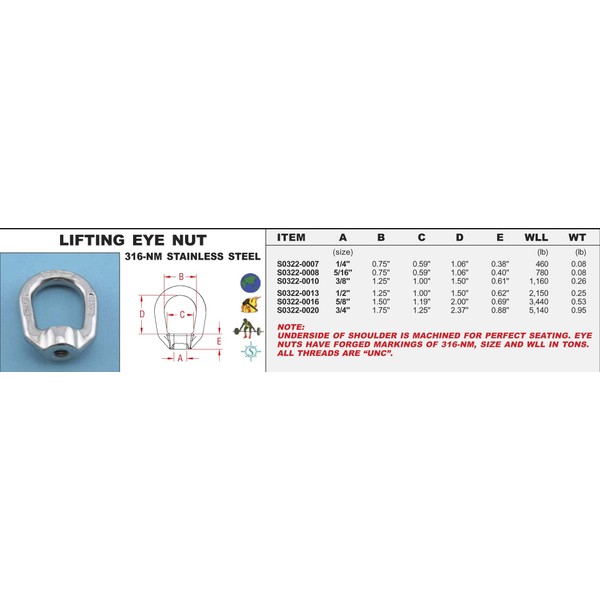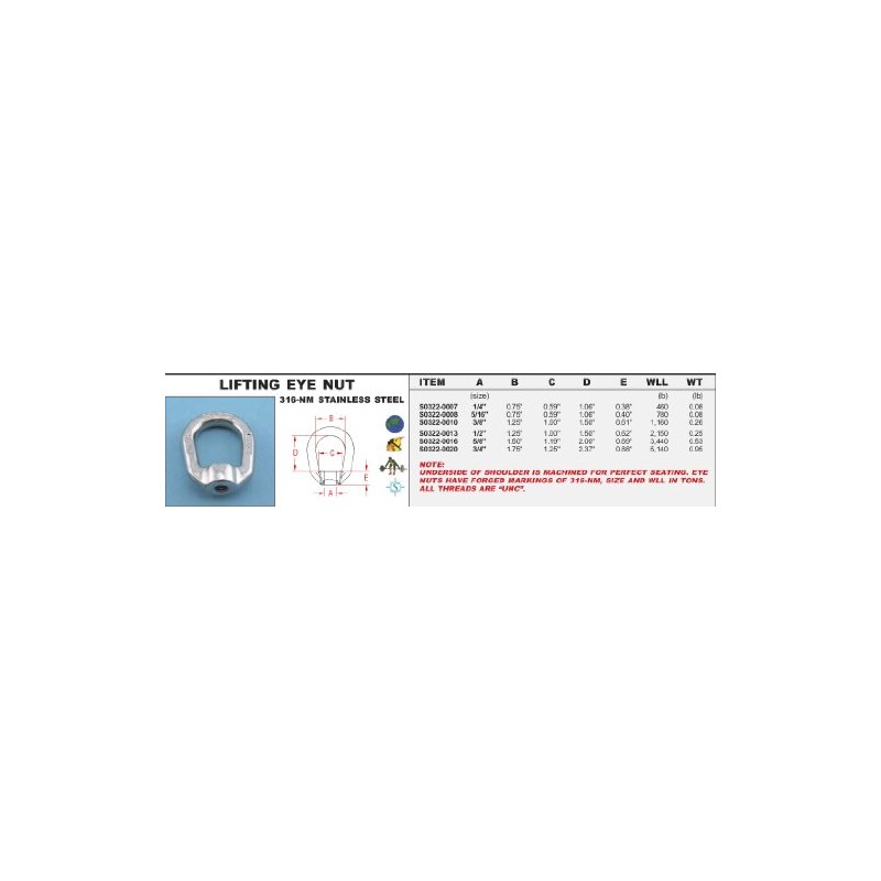 316-NM Stainless Steel Lifting Eye Nut 5/16" (S0322-0008)