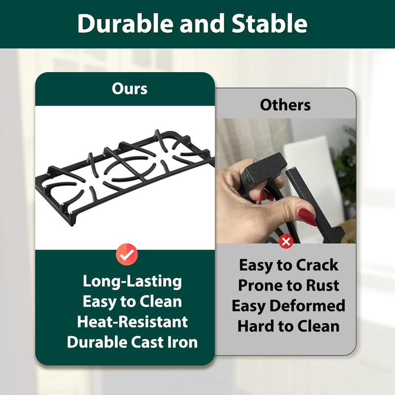 • Material of Frigidaire Grate: The frigidaire stove grates replacement is made of upgraded matte enamel cast iron, giving the frigidaire stove grate more durable, heat-resistant, perfect match, easy clean and long-lasting, provide a seamless cooking experience