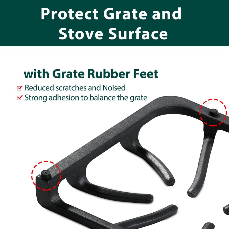 • Protect Frigidaire Gas Stove Grate: The frigidaire gas stove cast iron grates is design with frigidaire stove grate rubber feet to protect frigidaire oven grates from scratches and reduce noise, frigidaire gas range grates also have a strong adhesion to balance the grates foot on the rubber surface to provide a safe and quiet cooking environment