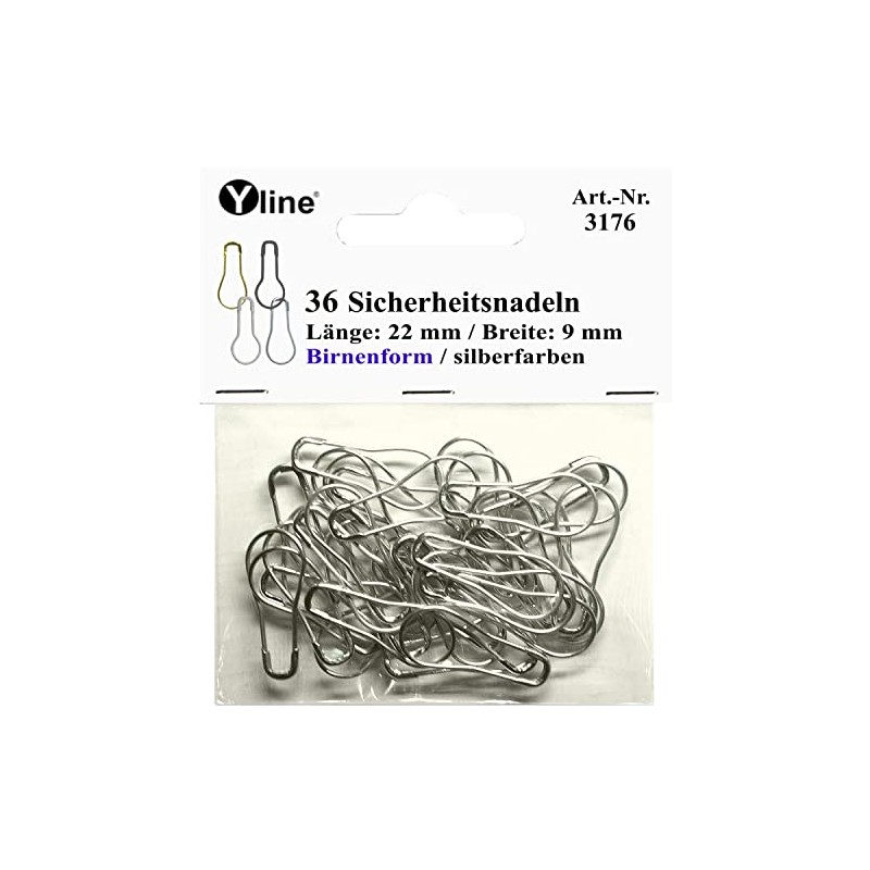3176 Mini Safety Pins (Pear Shape) Silver Approx. 22 mm Pack of 36