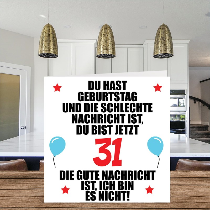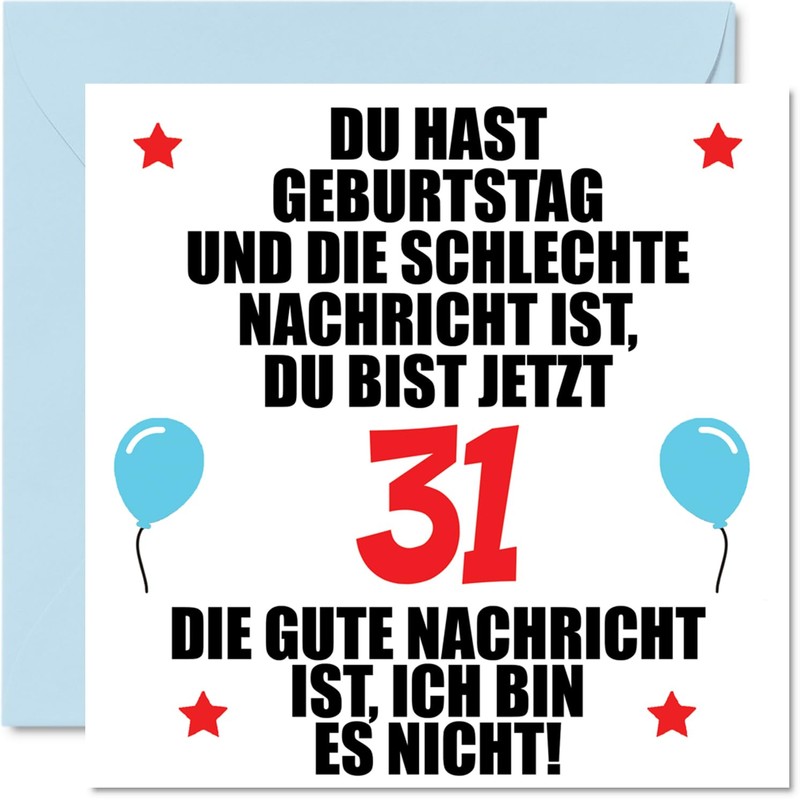- MAKE HER SMILE WITH THIS AMAZING BIRTHDAY CARD: This exceptional quality birthday card for her shows the design of pink glitter balloons 'YOU HAST BIRTHDAY AND THE BAD MESSAGE IS YOU ARE NOW 31st The good news is, I am not! If you are looking for funny birthday cards for men, then this birthday card is guaranteed to make them laugh.