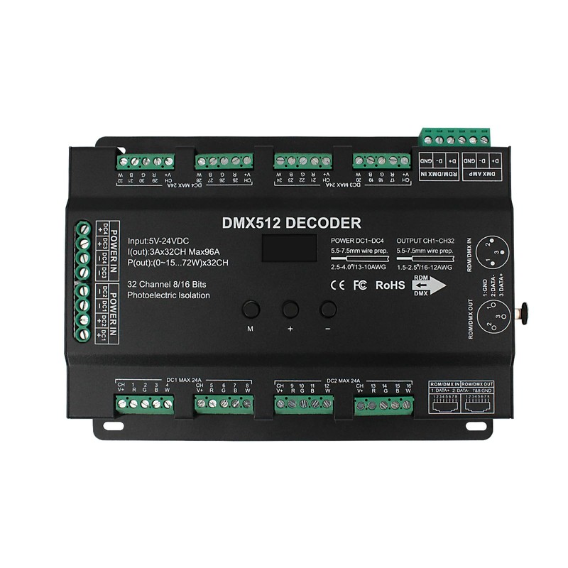- 【Surgical Precision for Complex Lighting 】 Master 32 channels of 16-bit grayscale control (65,536 dimming levels) with flicker-free 8KHz PWM output, engineered for cinematic color transitions in film studios, luxury retail displays, or high-end automotive showrooms.