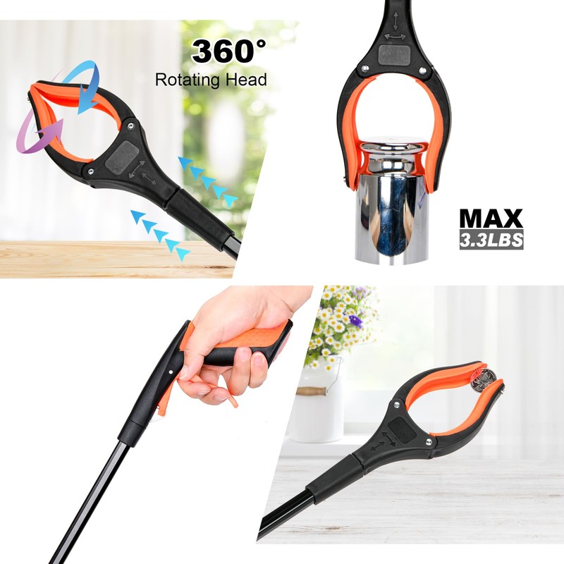 - Easy Grabbing:The 32inch grabber tool comes with an ergonomic handle, long enough for you to picks up coins, envelops, trash from floor, top shelf, parks with no more bend down; Rotating rubberized head to reach places like the corner or behind furniture, minimize the physical strain.