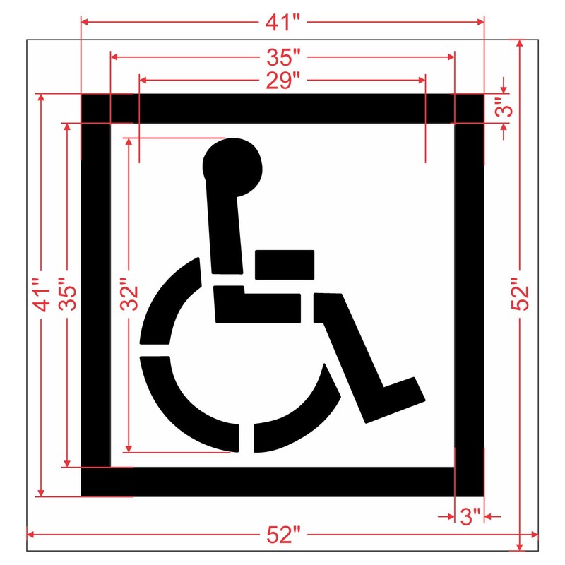 - WHAT'S INCLUDED: Each package comes with a single 32” "Handicap" symbol with 41" border stencil. All of 1800-Stencil Handicap symbols meet Local DOT and ADA regulations.