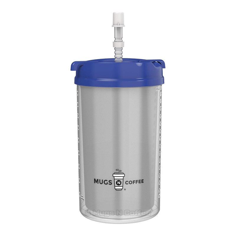 32 oz Double Wall Insulated Hospital Mug - Cold Drink Mug - Large Carry Handle - Includes Straw (2, Blue)