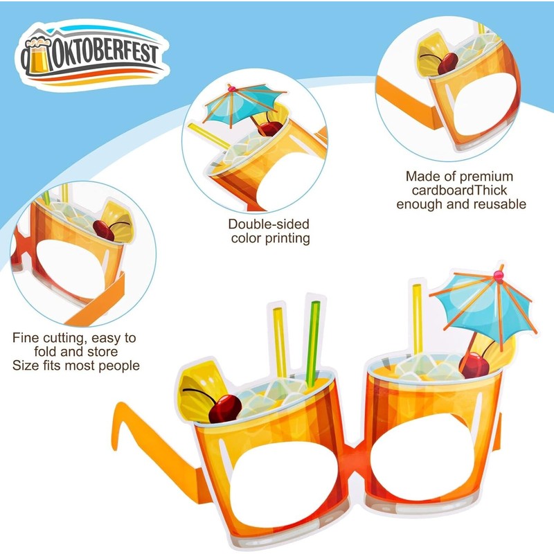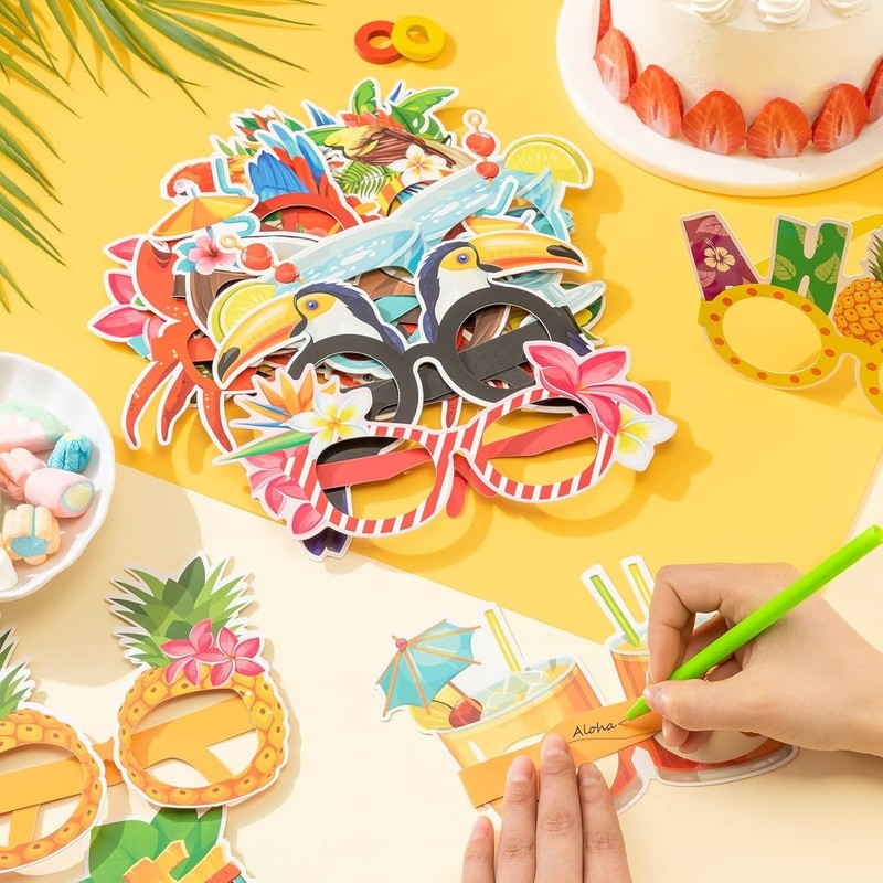 Crafted from durable and safe cardstock, these beach party paper glasses are lightweight yet sturdy enough for extended wear. Sized at approximately 5.91 inches, they fit most teens and adults comfortably. Bright, fade-resistant colors and reliable construction ensure your tropical party fun won’t be interrupted—ideal for indoor or outdoor use.DIY-friendly design with blank backs for custom creations