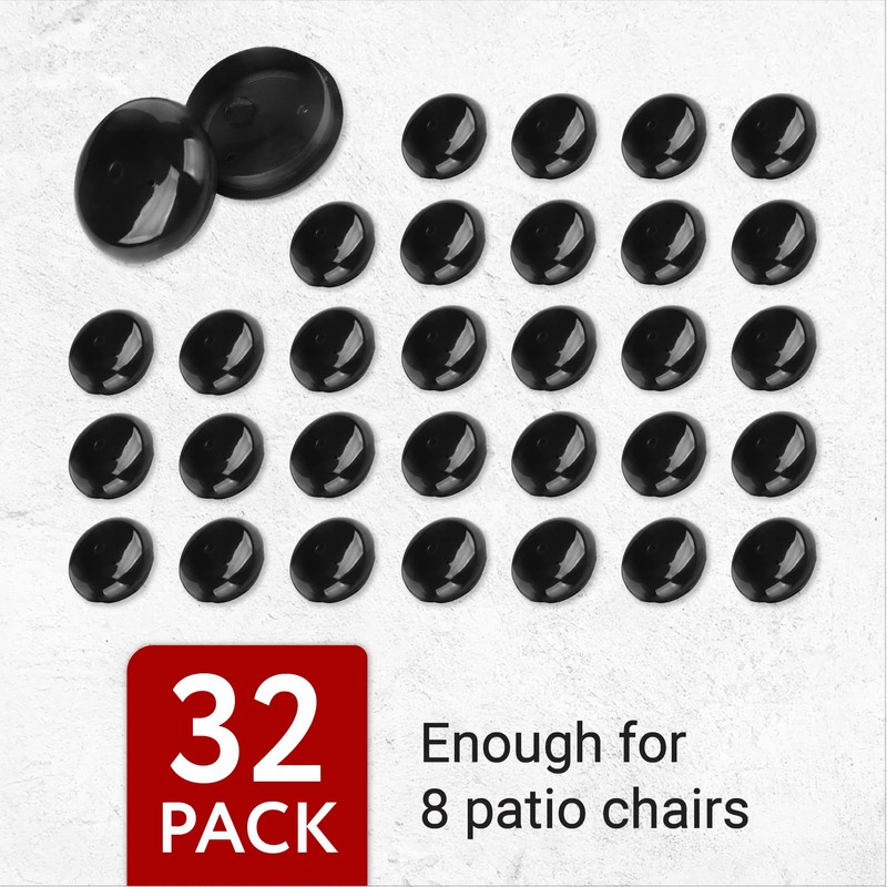 Impresa Patio Chair Feet Caps - 1.5 in Black, 32-Pack - UV-Resistant Plastic Furniture Leg Caps, Chair Leg Floor Protectors & Outdoor Metal Furniture Glides