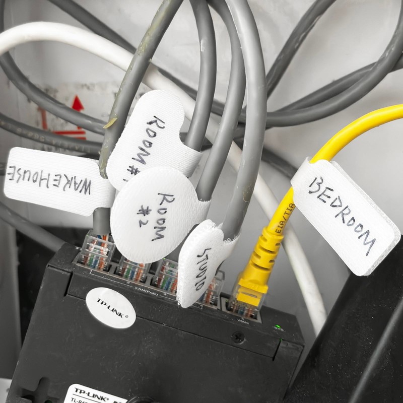- 【EASY TO WRITE】The surface of the cable labels has undergone special treatment, making it smooth and flat, which is easy to write on with a ballpoint pen or a oil pen, this helps makes cords easy to identify and can be used as cable tag, cord labels for electronics, power cord organizer, computer wire organization and more.