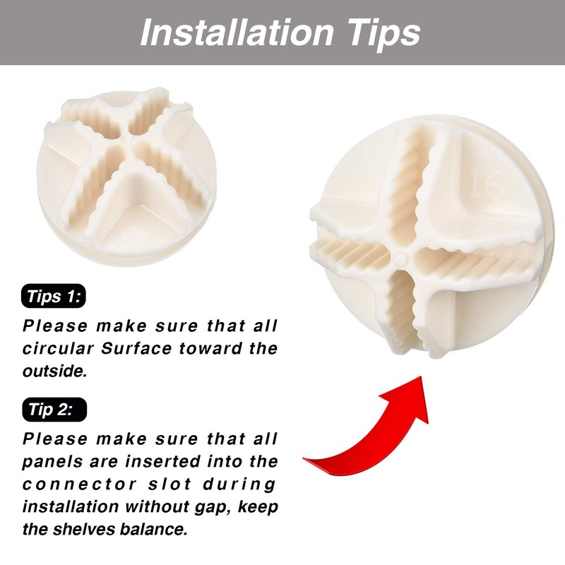 - Convenient to use: inset all panels into the connector and make sure all the circular surface toward outside, keep the shelves balance after installation