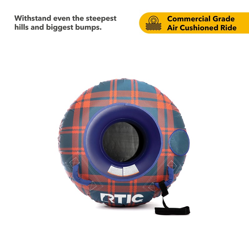 32" RTIC Tough Snow Tube for Sledding Heavy Duty for Kids, Inflatable Winter Sleds, Puncture Resistant Tarpaulin Bottom and Handles, Commercial-Grade, Slate Blue/Orange Plaid