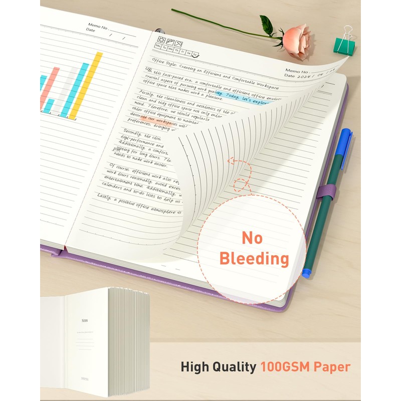 - 【100GSM High Quality Paper】The notebook is made of 100gsm high grammage paper, which is 20% thicker than ordinary paper. The paper is smooth and writes smoothly without ink penetration, suitable for most fountain pens.180° easy to lay flat for more comfortable reading and writing