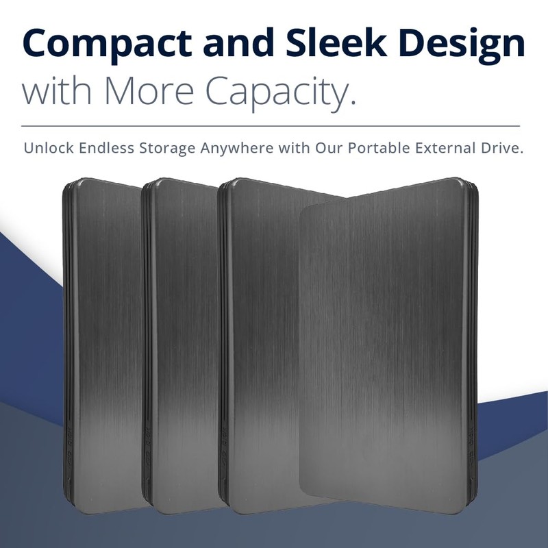 - Slim, Portable & Travel-Ready Design-Designed with portability in mind, this ultra-slim external HDD fits comfortably in your hand, pocket, or laptop bag. Its sleek profile and lightweight construction make it perfect for travel, remote work. This hard drive gives professional look, while its silent operation ensures you can work or play without distractions. It's your on-the-go solution for quick file access, reliable storage, and unmatched convenience.