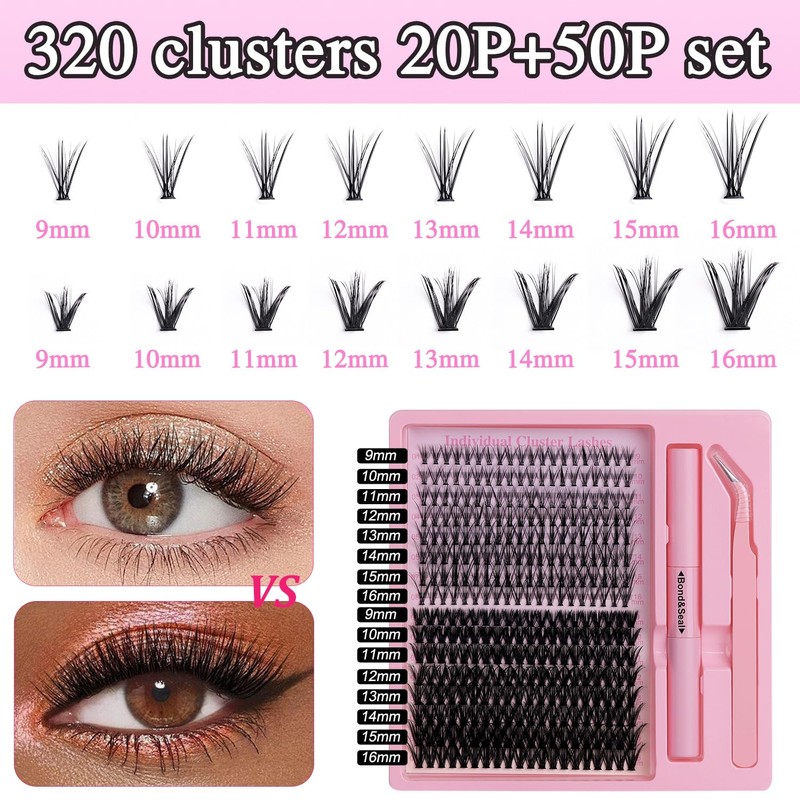 320PCS Eyelashes Individual Kit - 2 Styles Cluster Lashes Kit (20P+50P) - 9-1...