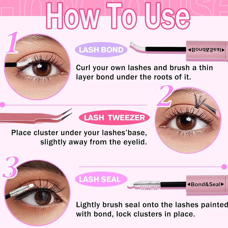• 【Soft & Lightweight】: Lightweight false eyelashes with a stable curl that won't droop. The bond glue is gentle on sensitive eyes yet strong enough for all-day wear. Our lashes individual cluster kit uses soft, flexible materials that move naturally with your own lashes – no stiff, artificial feel