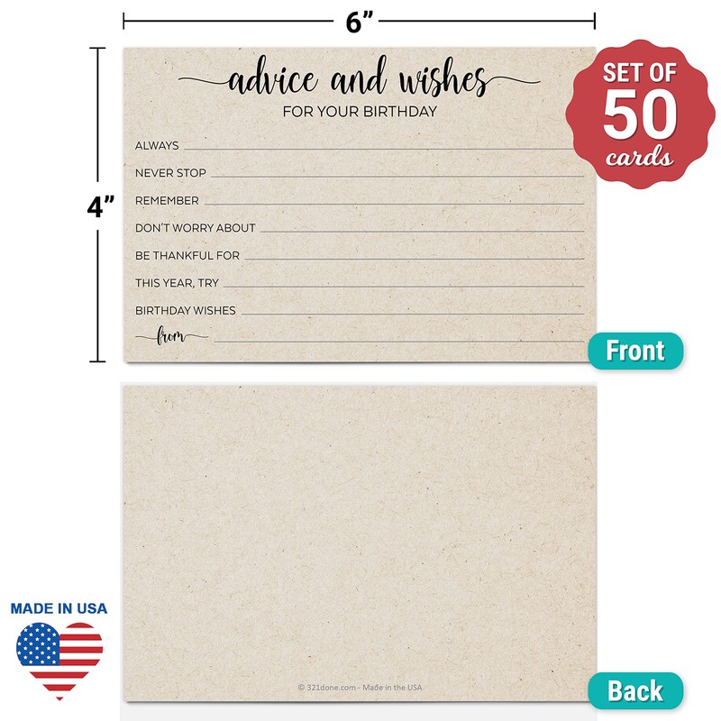 - PREMIUM QUALITY: Designed and made in the USA using luxury cardstock and crisp, clear printing - fine quality birthday advice cards for the guest of honor!