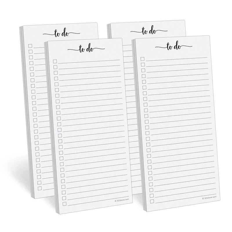 - CONVENIENT DESIGN: 4 To-Do notepads per pack. Each pad contains (50) 1/3 letter (3.67 x 8.5 inch) sheets. Checklist boxes and college ruled lines allow plenty of space for writing without feeling crowded.