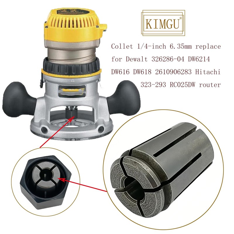 326286-04 Collet 1/4-inch 6.35mm Replace for Dewalt DW6214 DW616 DW618 2610906283 Hitachi 323-293 RC025DW router